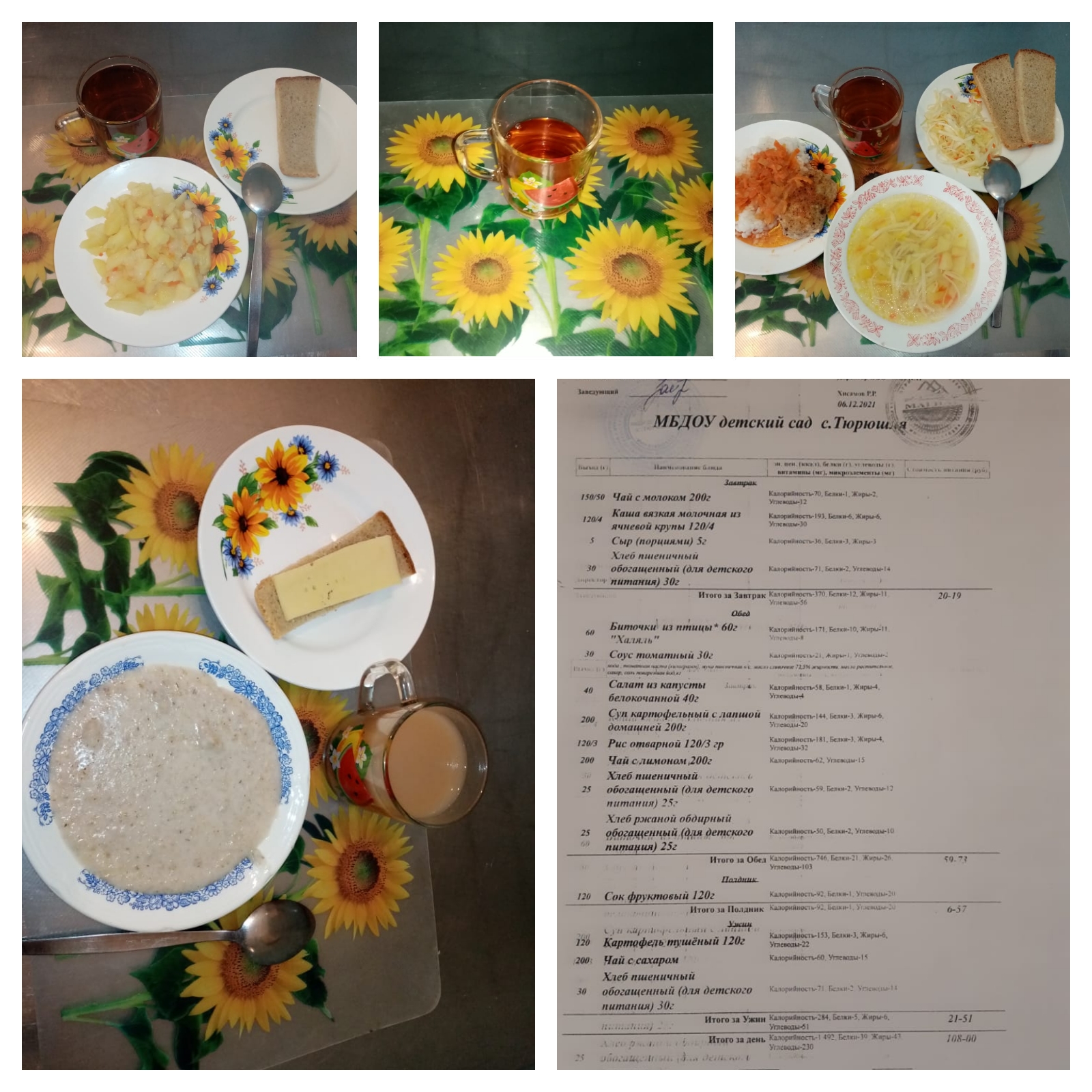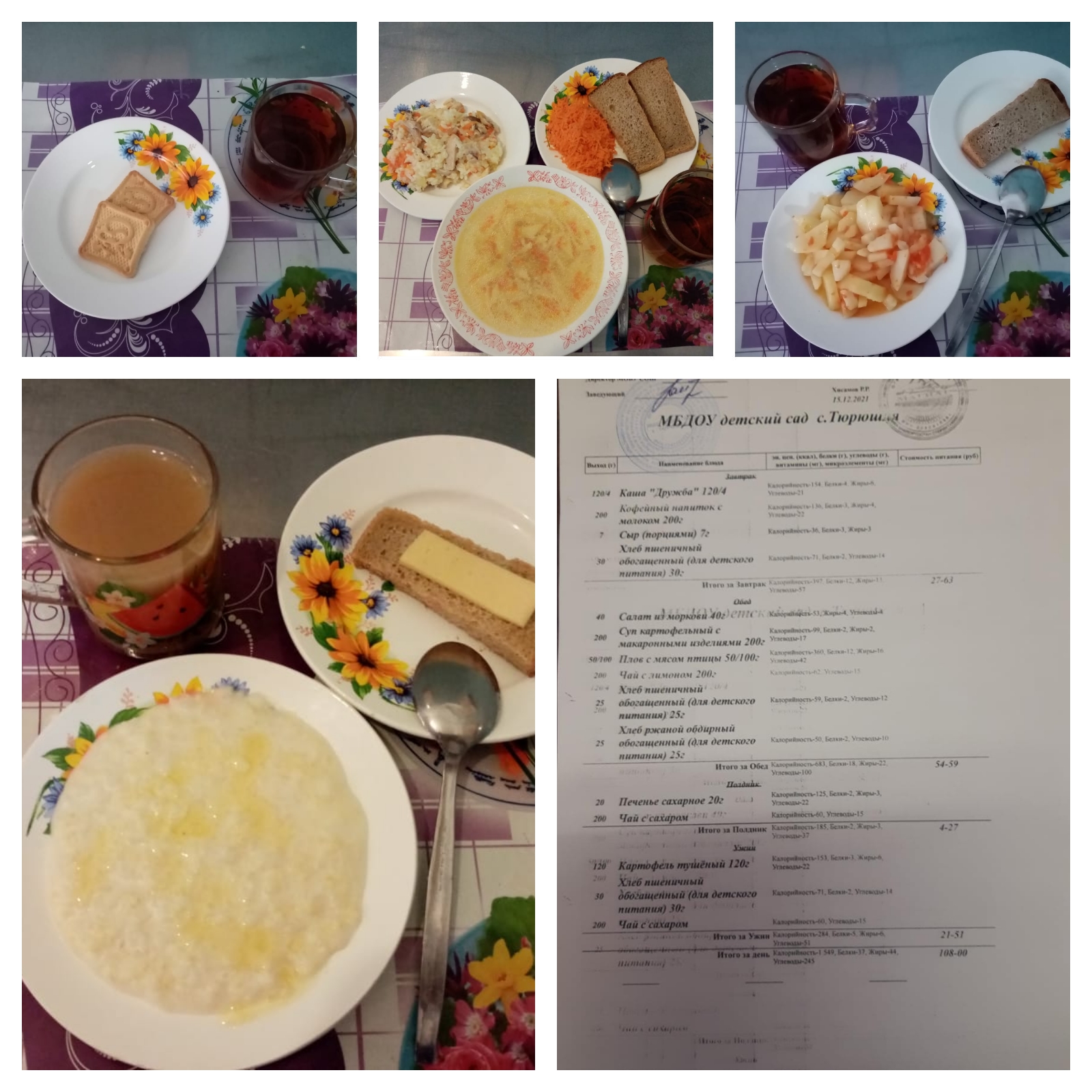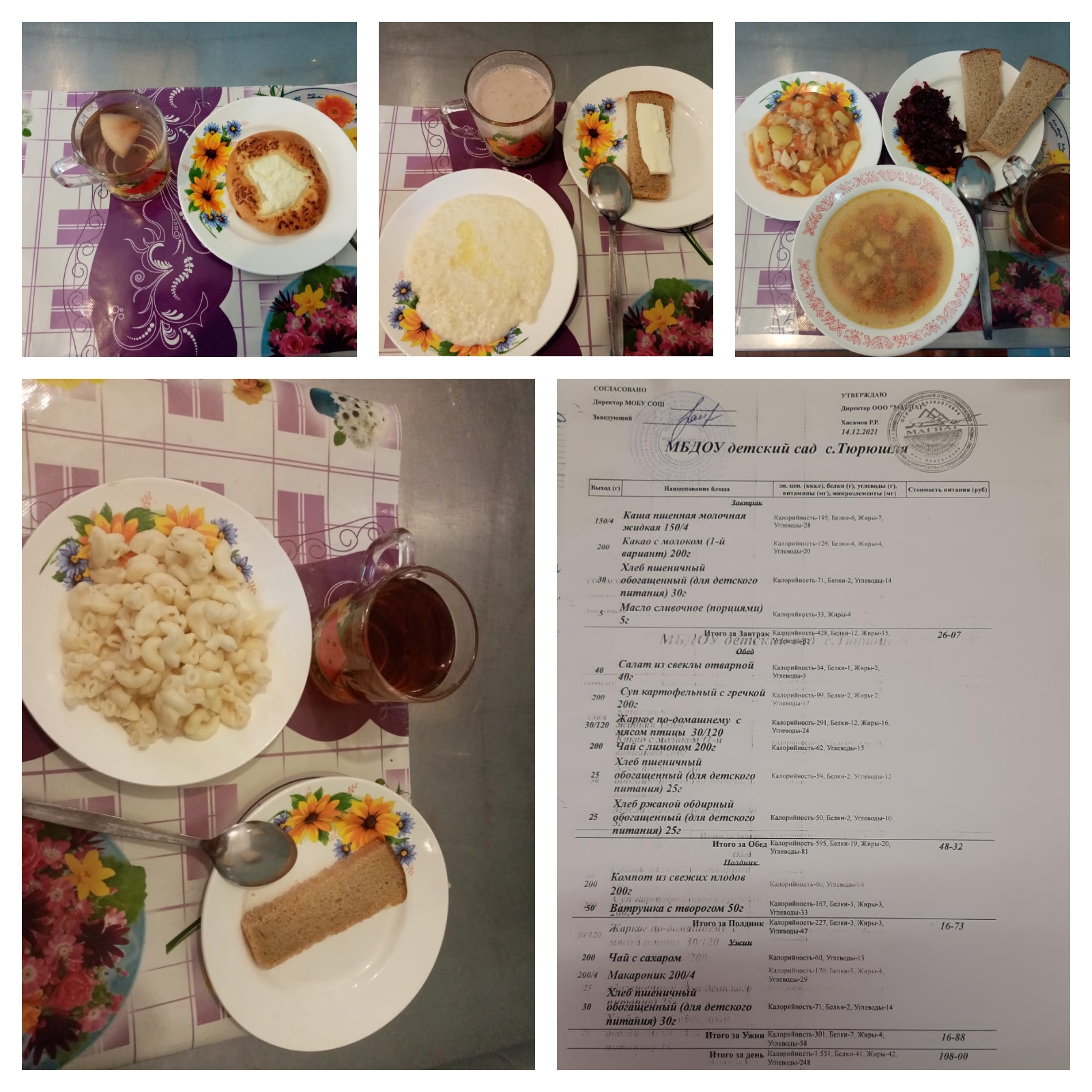Примерное меню